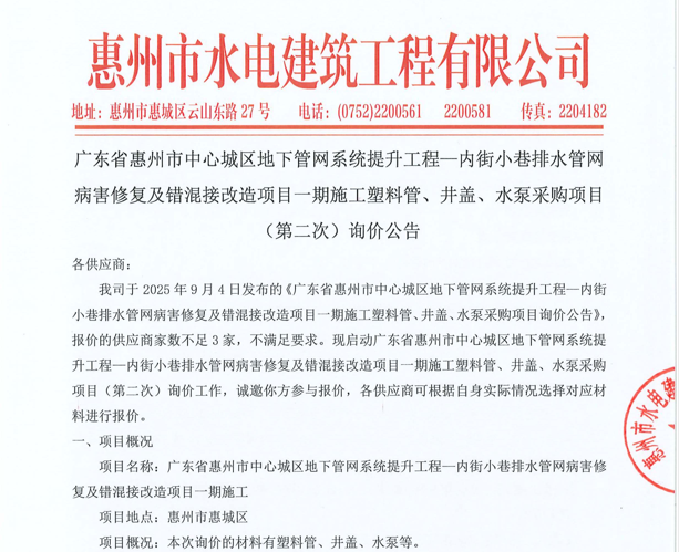 惠州市水電建筑工程有限公司成立于一九六四年四月,隸屬惠州市水務集團有限公司,是一家國有綜合性施工企業,主營水利水電工程、房屋建筑、市政工程等施工業務。公司擁有水利水電工程施工總承包一級、建筑工程施工總承包一級、市政公用工程施工總承包一級、公路工程施工總承包三級,公路路基、路面及建筑裝修裝飾專業承包二級,環保工程、機電安裝、河湖整治、輸變電工程專業承包三級等經營資質……